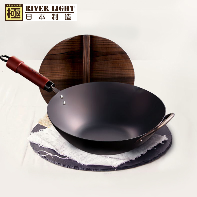 RIVERLIGHT original imported wok Japanese polar iron pan non-coated high purity Iron healthy cooking wok 30cm
