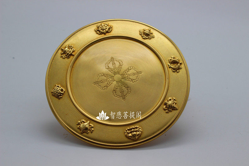 Pure gilt copper eight auspicious Man tea tray with a full set of pallets