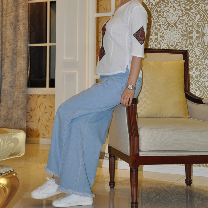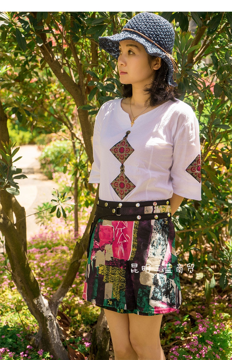 New Spring and Summer National Wind Cotton and White Shirt Woman in the Long Sleeve Skin Copper Copper Cover