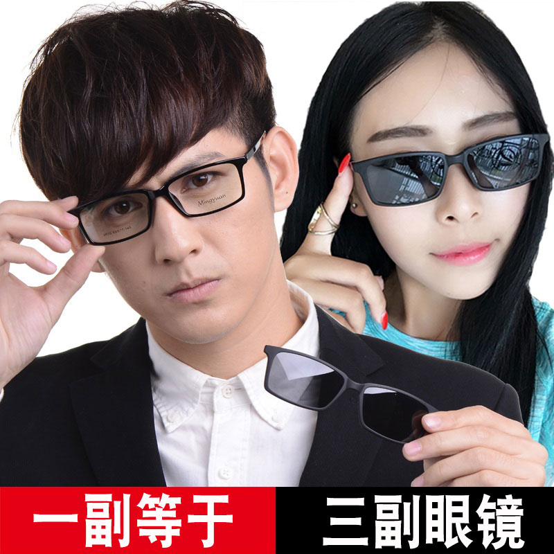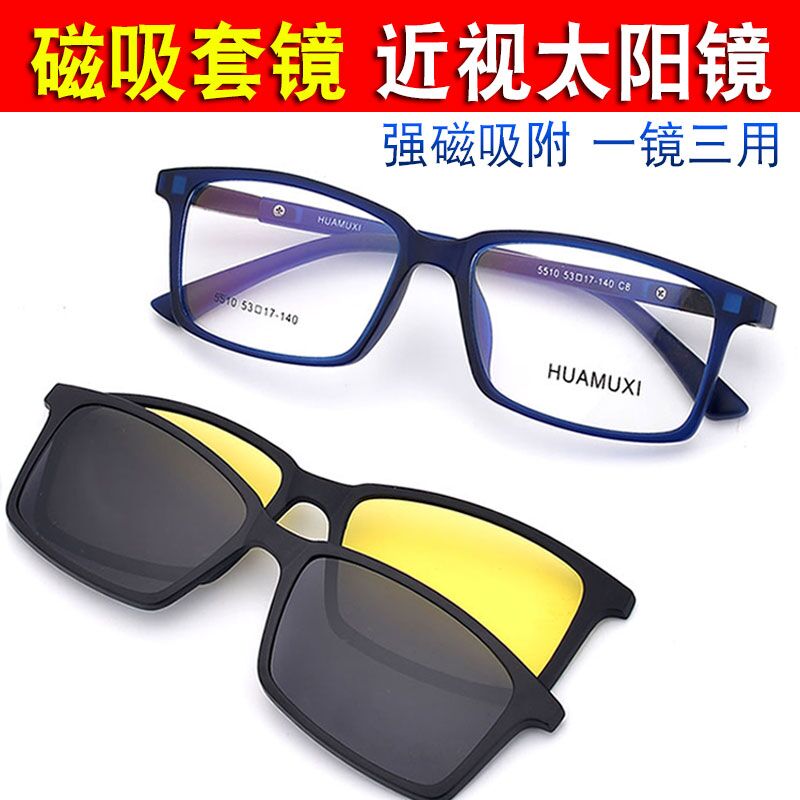 Magnetic suction sleeve mirror with sunglasses two-in-one magnetic suction glasses with polarized color change men's myopia sunglasses clip-on women