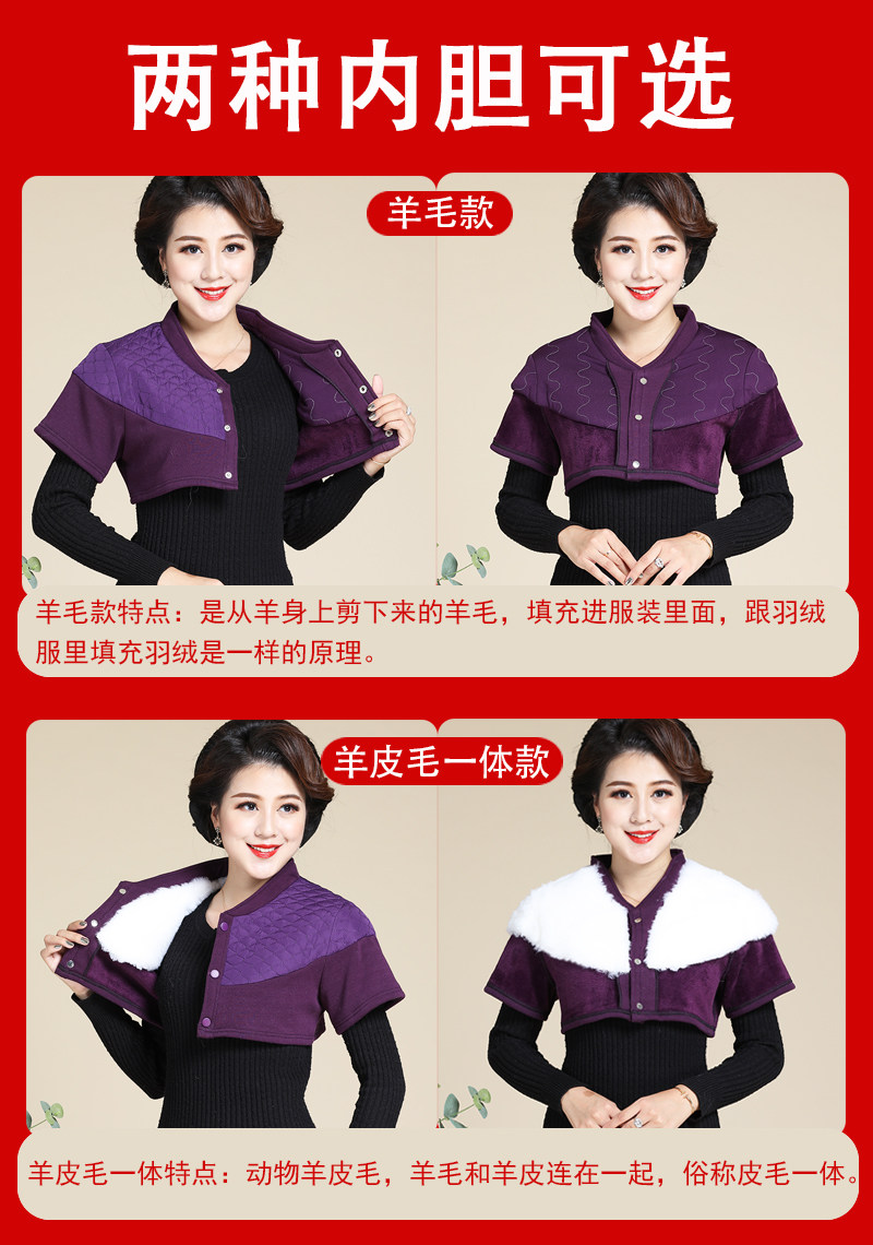 Blue short sleeves (wool) grey short sleeves (wool) red long sleeves (wool) red short sleeves (lamb fur integrated) purple short sleeves (lamb fur integrated) blue short sleeves (sheep)