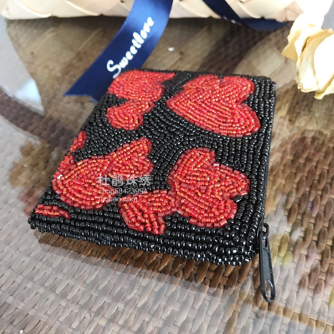 Rhododendron Beaded Embroidery Cartoon Square Original Handmade Beaded Red Love Coin Earphone Storage Hand Hold Coin Purse