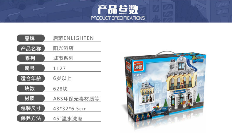 Enlightenment block small particle assembly model 6-12 years old children Young Toy City Series Sunshine Hotel 1127