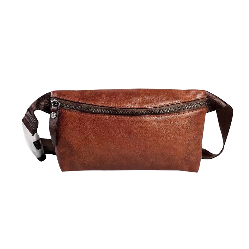 Mobile phone waist bag leather cross chest bag retro handmade first layer leather boys satchel Korean fashion casual bag