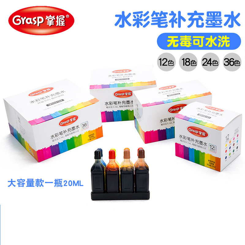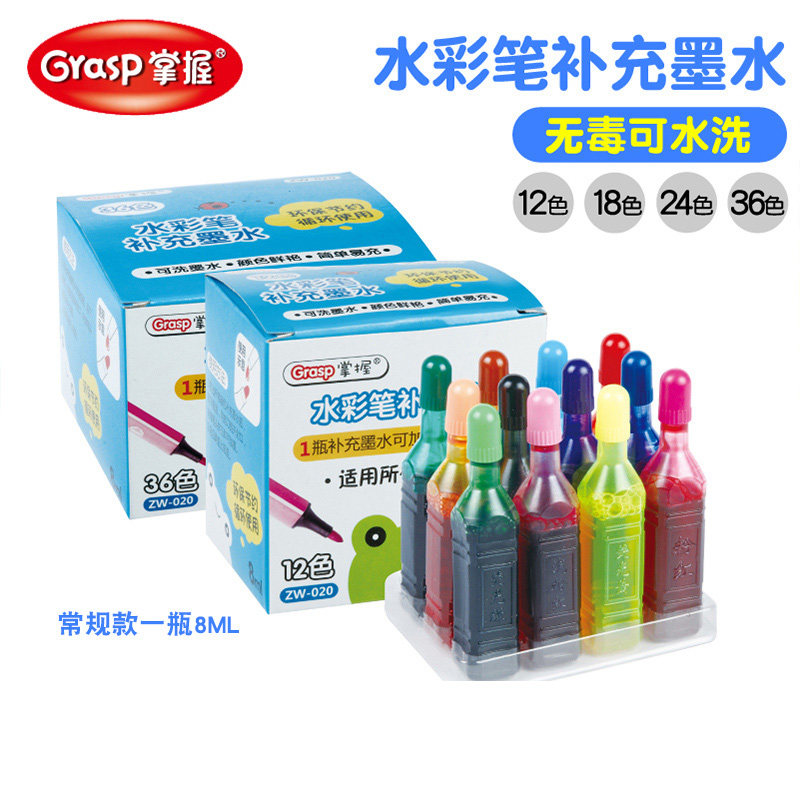 Master watercolor pen refill liquid 12 18 24 36 color set washable safety non-toxic large bottle large capacity refill ink for children's primary school painting special pigment color pen water