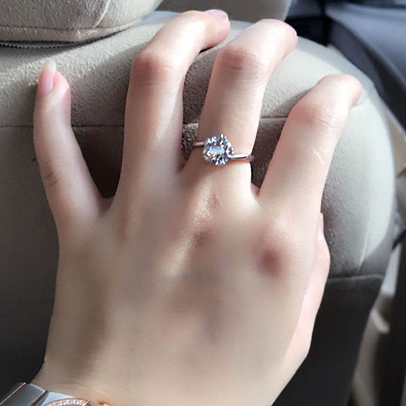 Moissanite diamond ring female twist arm sterling silver emulation 1 2 carat wedding ring engraved 18K white gold pt950