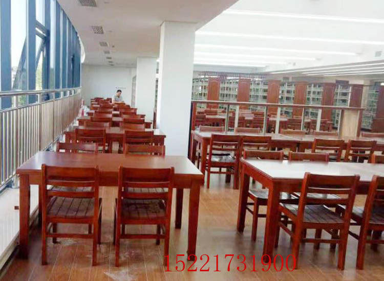 Solid wood four-person reading table 1500*800*760 solid wood six-person reading table 1800*900*760 solid wood reading chair 430*420*410-820B solid wood six-person reading table 1800*900*760