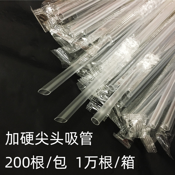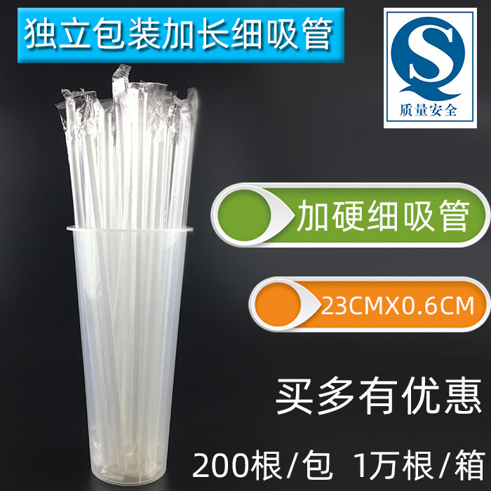 Independent packaging disposable milk tea lengthened small straw plastic transparent straw beverage black fine straw 23cm