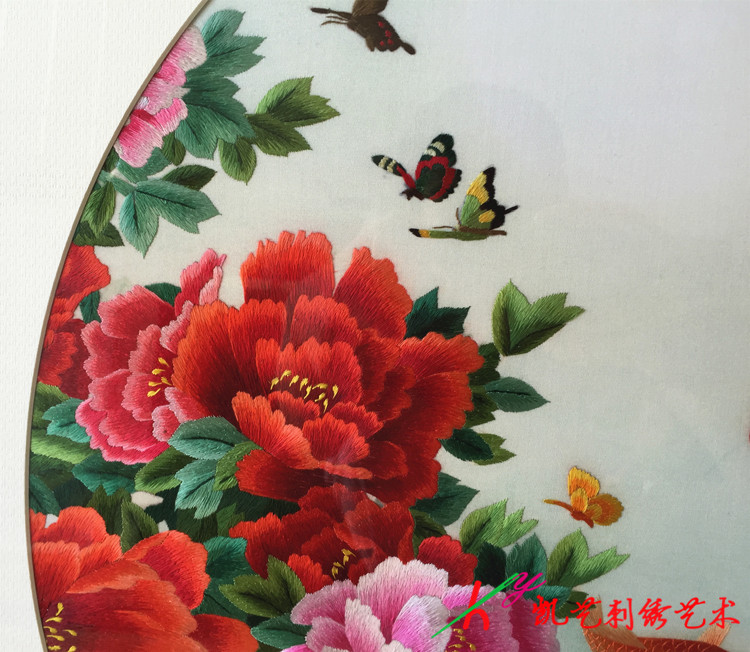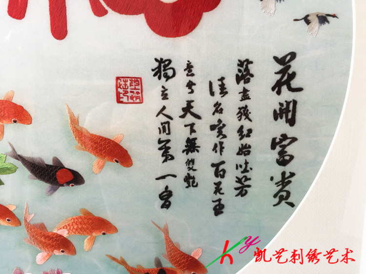Su embroidery finished living room painting blessing carp peony flower blooming rich hand embroidery fine hanging painting fish fortune map