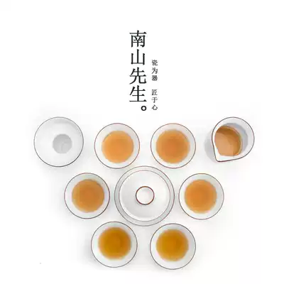 Mr Nanshan matte fat white tea set Kung Fu tea set White porcelain hand-painted cover bowl Tea filter Fair cup Household