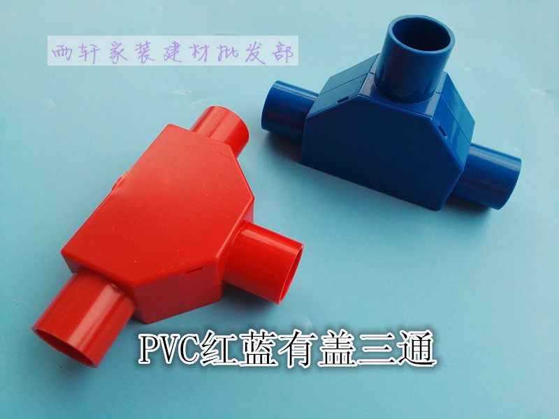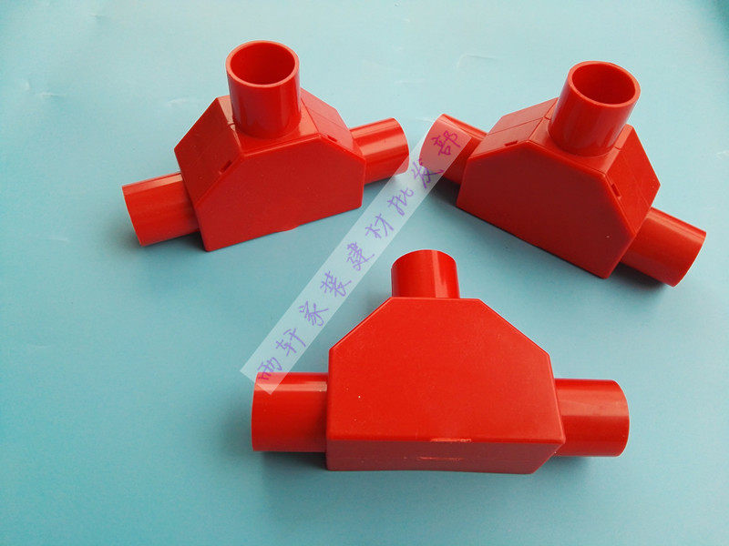 Red Cong plastic PVC wire pipe fittings covered tee 20MM 4 points with mouth TEE triangle commander box