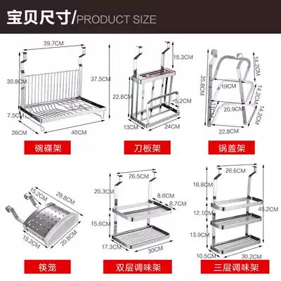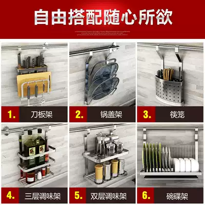 Non-perforated 304 stainless steel kitchen rack wall-mounted hanging rod adhesive hook multi-function storage tool holder