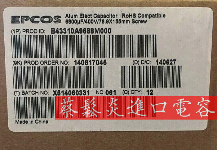 EPCOS import frequency inverter electrolytic capacitor 400v6800uf 76 9 * 155 Ipcos B43310