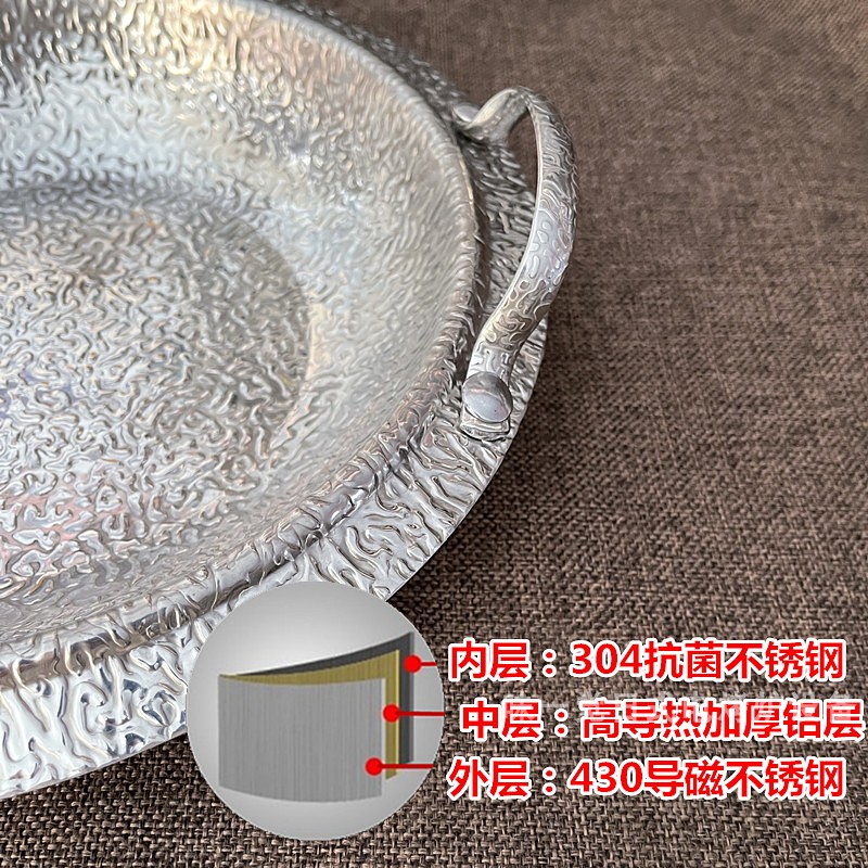 Korean stainless steel army hot pot - three-layer stainless steel seafood pot 304 thickened induction cooker commercial dry pot matte