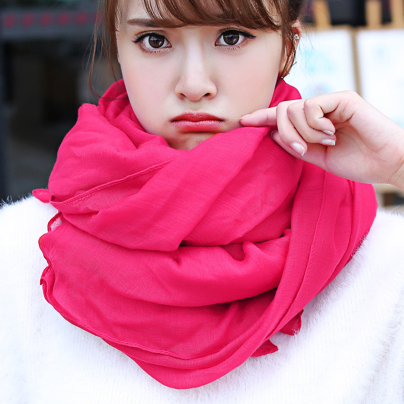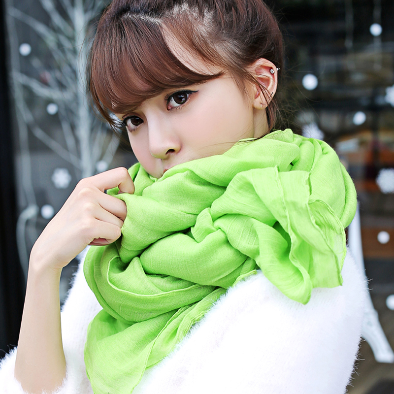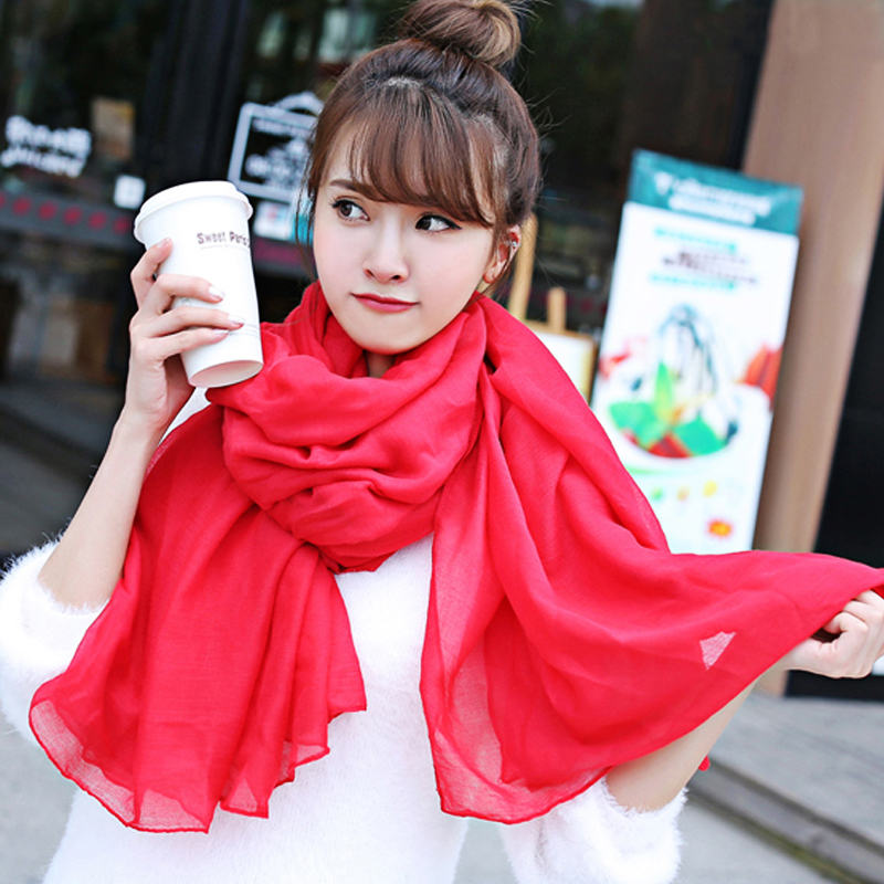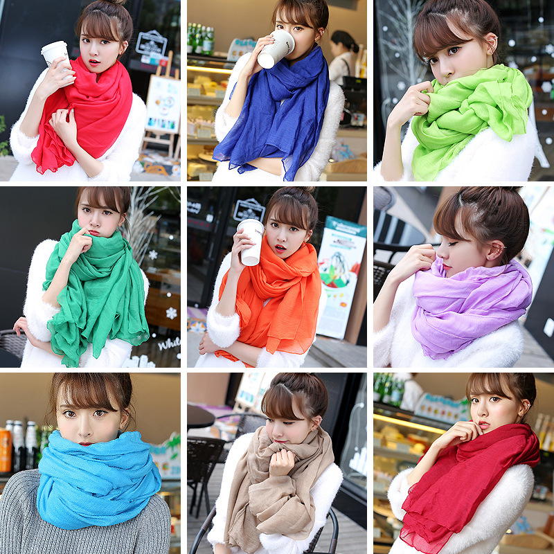 Cotton and linen silk scarf women's spring and summer literature and art solid color super large beach gauze towel four seasons universal shawl long version scarf dual-use autumn