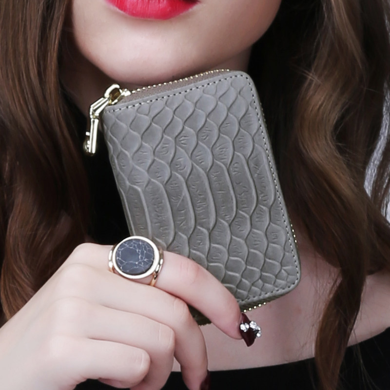 KIMO new women's style card pack European and American genuine leather crocodile ripples with small card-in-card holder card holder