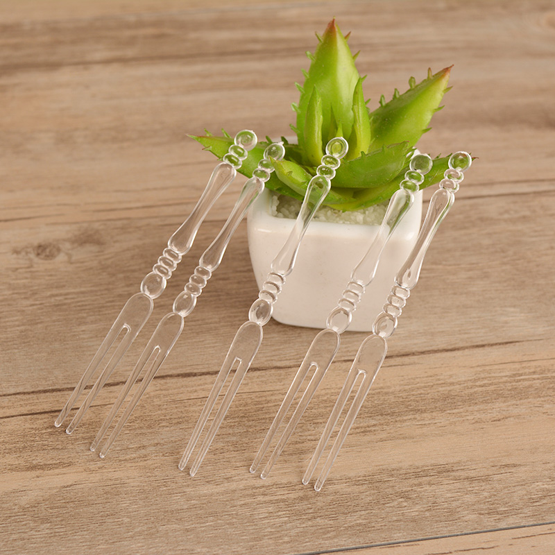 Hanya thickened disposable fruit fork cake fork two-section fork bamboo fork disposable plastic fork transparent fork