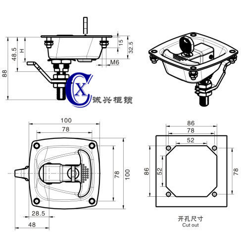 Special middle control lock MS858-1C caravan door lock cart engineering car mechanical distribution box Flat lock panel lock