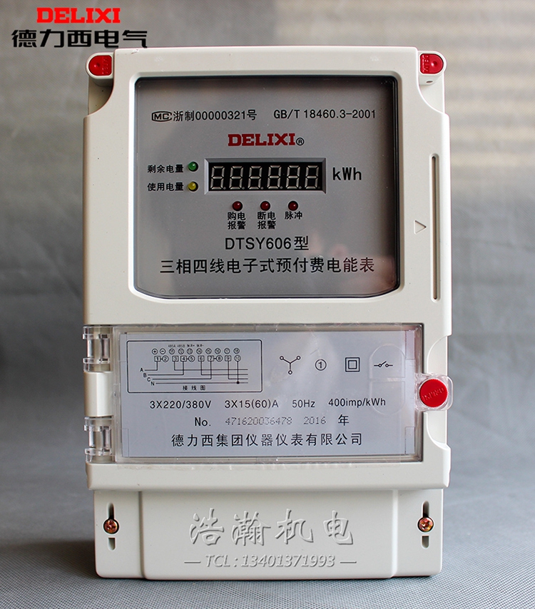 Delixi DTSY606 three-phase four-wire prepaid plug-in meter IC Plug-in electronic prepaid energy meter