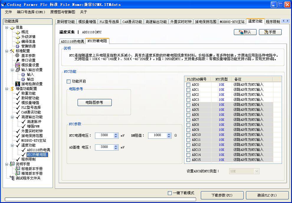 STM32 domestic PLC temperature function ADS1118 thermocouple NTC thermistor