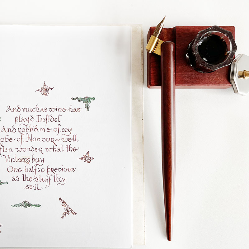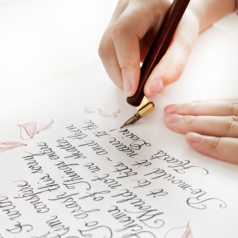 Simple retro solid wood oblique rod pen English calligraphy fancy oblique head pen round body floral character ES dipping pen special