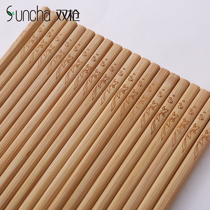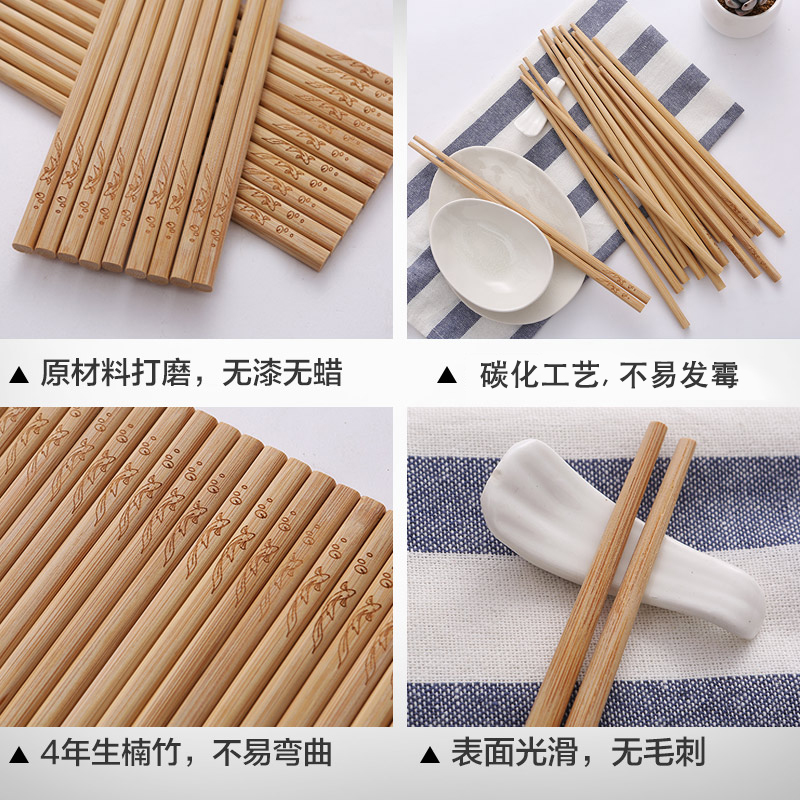 Double gun bamboo chopsticks paint-free wax-free home carbonized chopsticks 10 pairs of mildew-resistant anti-slip household tableware Japanese fast