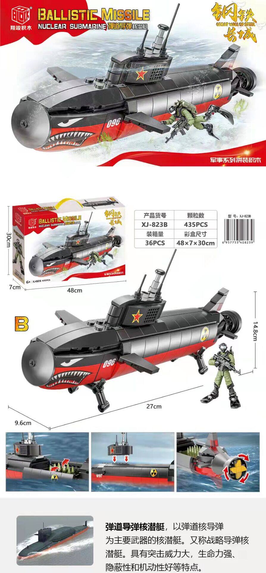 Informative XJ823B Military 096 nuclear submarine escorts warship simulation building blocks model children puzzle assembly toy