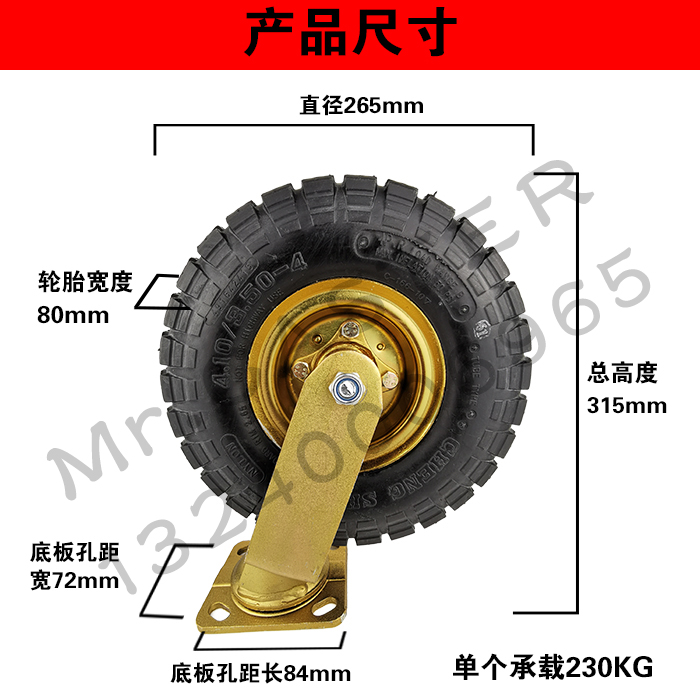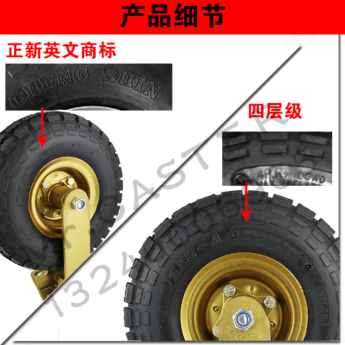 10 inch Zhengxin inflatable universal directional tire 4 10 3 50-4 pneumatic caster trolley rubber silent wheel