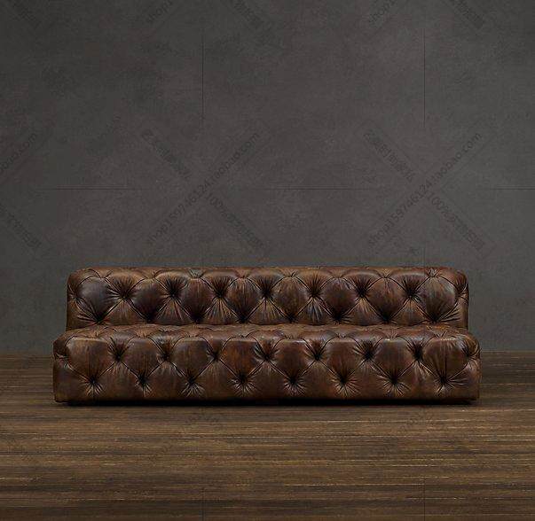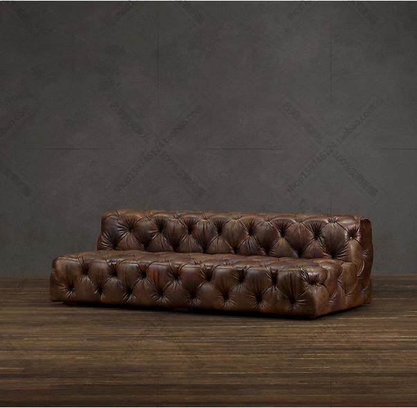 American high-end living room buckle leather retro sofa French small apartment cafe card seat three-person leather art sofa