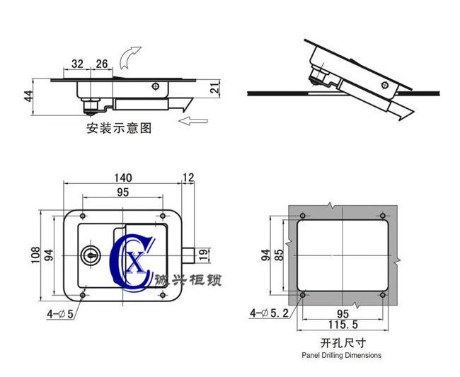 Stainless steel flat lock MS858-1 car door lock RV door lock van panel lock high-end electric cabinet door lock