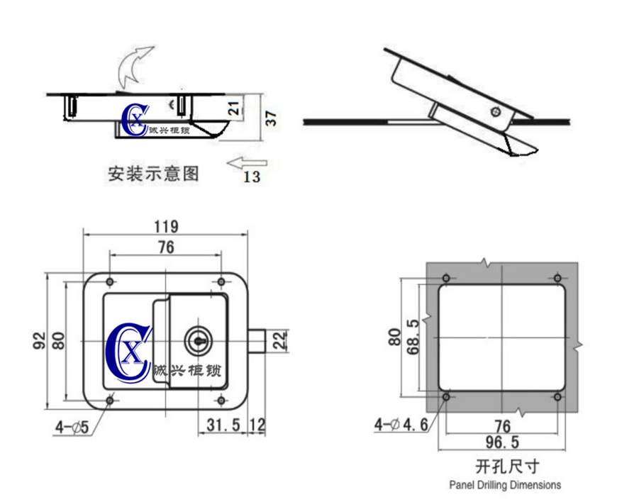 Electric cabinet box panel lock stainless steel plane lock MS858-2 RV lock sanitation vehicle cleaning vehicle sprinkler door lock