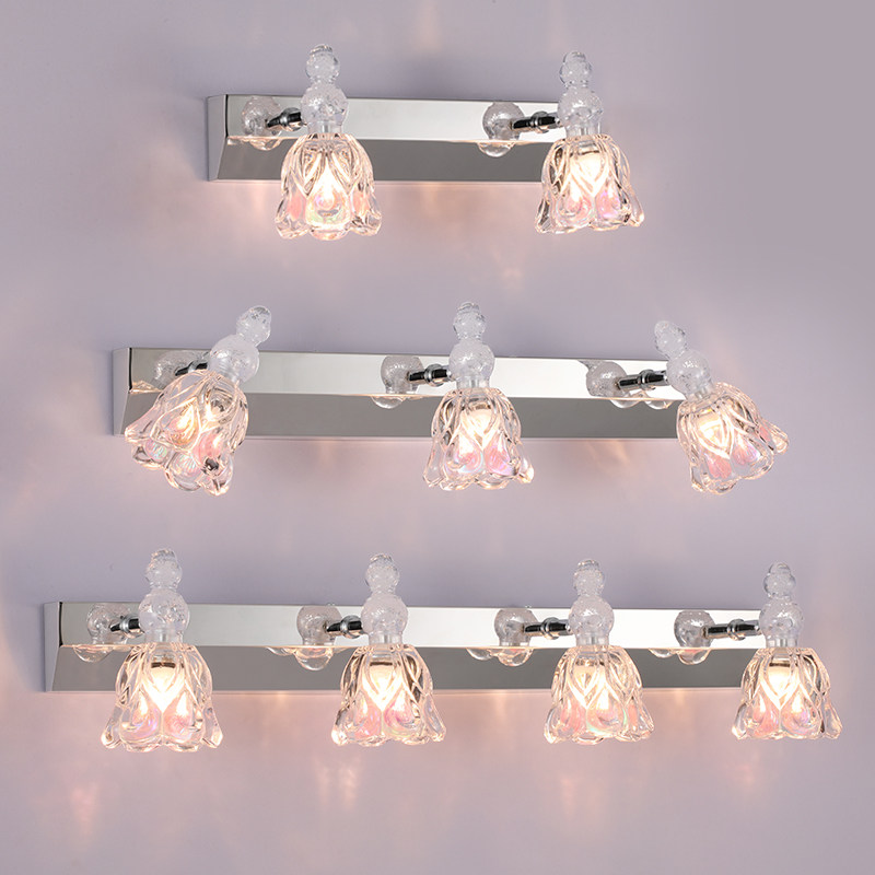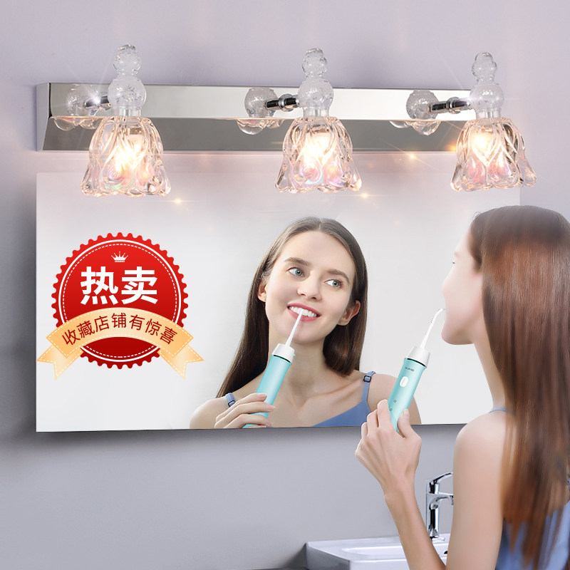 Pink mirror headlight led powder room bathroom vanity table Vanity table Mirror cabinet Wall lamp Waterproof non-perforated stainless steel