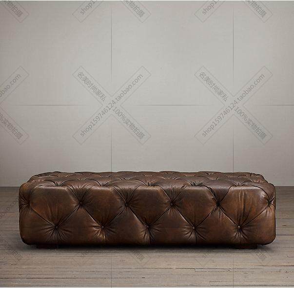 American retro leather sofa stool shopping mall clothing store European rectangular leather art fitting stool changing shoe stool rest stool