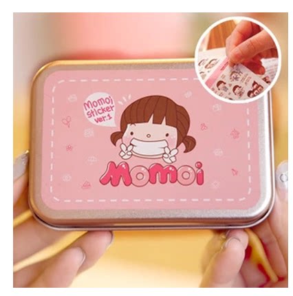 New good quality Korean cute super cute MOMOI girl stickers diy hand account stickers 20 pieces iron box hardcover