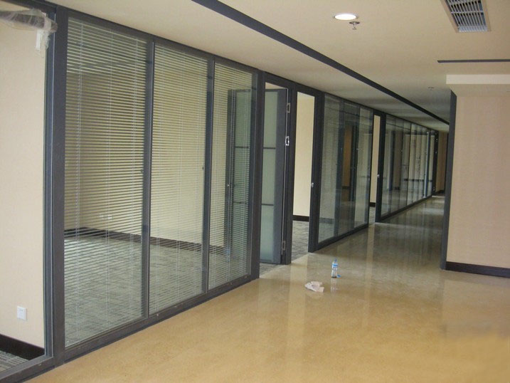 Shanghai office partition wall Suzhou office aluminum alloy partition double laminated clamp shutter tempered glass high partition