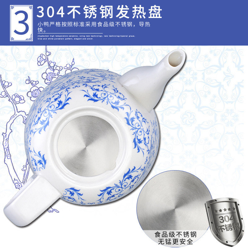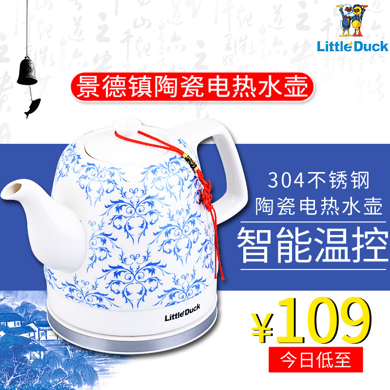 Small duck Jingdezhen Ceramic electric kettle Home Automatic power off low noise Boiling Kettle Bubble Teapot Green Flowers 1 2L
