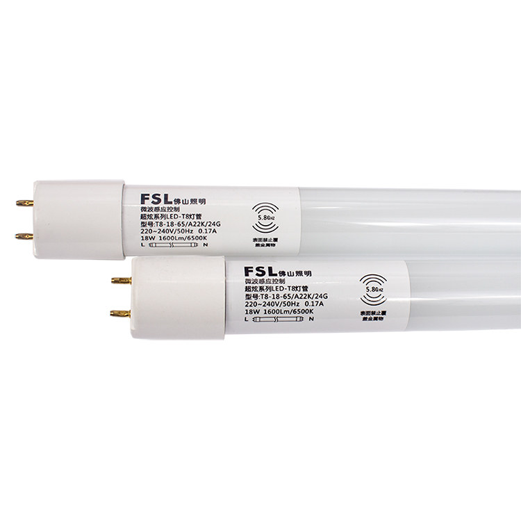 Foshan lighting LEDT8 human infrared radar microwave induction LED daylight lamp tube garage light induction lamp 18W