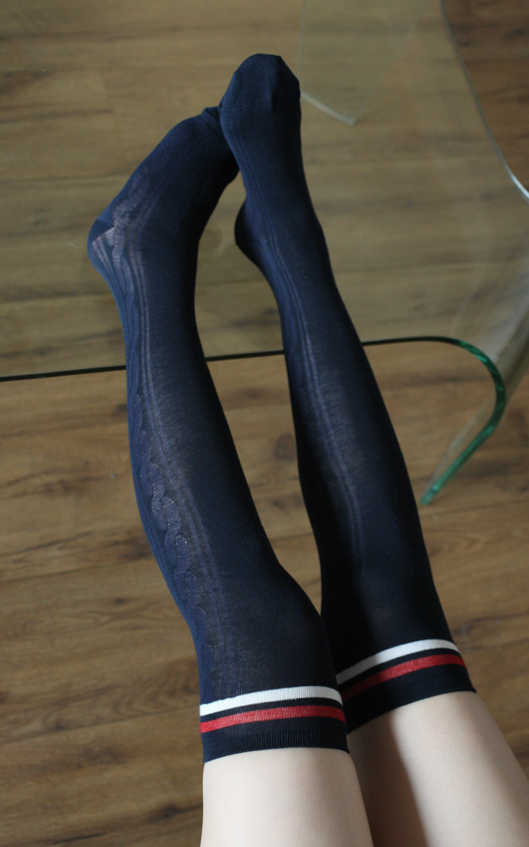 Two or three bars over a knee hidden Cyan Twist High Cylinder Socks Long Cylinder Pure Cotton Women Socks Deep Blue Cheerleader Dance Uniform Socks
