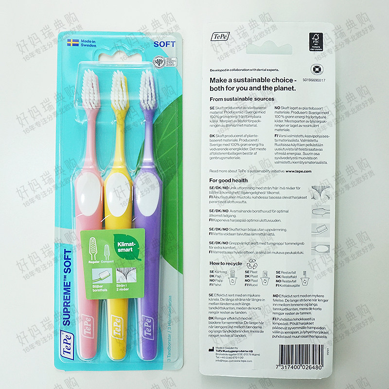Spot) new Swedish TePe supreme double-layer ultra-fine soft bristle toothbrush 3 packs of sensitive gums pregnant women confinement