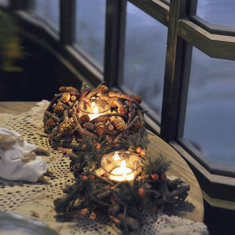 Ring candle holder star-shaped candle holder mini candle holder (outer diameter 13cm) pine needle red fruit candle holder (outer diameter 15cm) branch candle holder (outer diameter 20cm) 12 only tea waxed (colour random hair) gold
