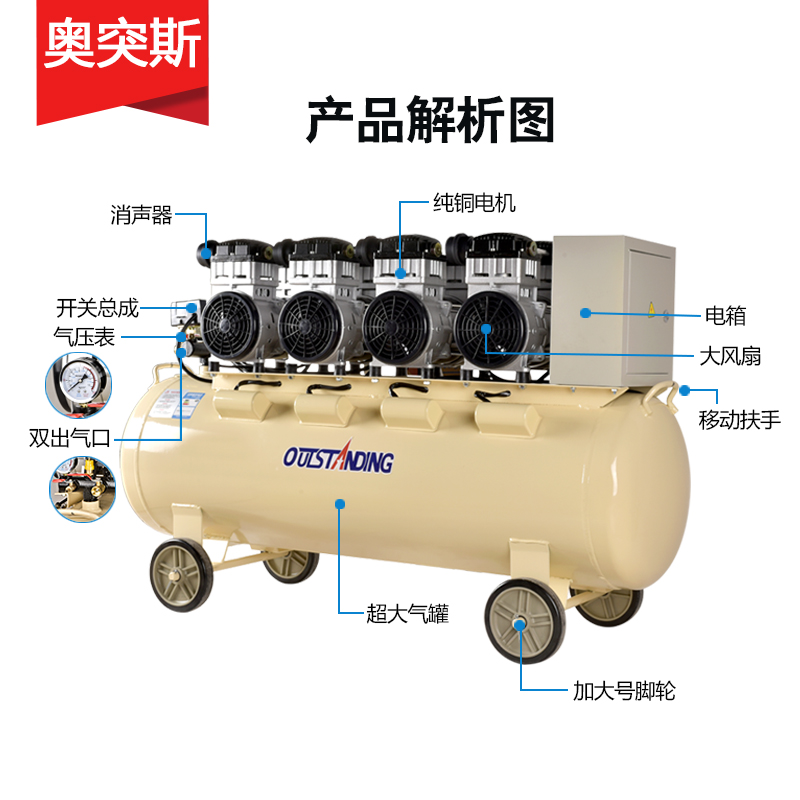 Oris copper wire air compressor industrial grade silent auto repair oil-free pump 220V decoration woodworking spray paint air pump