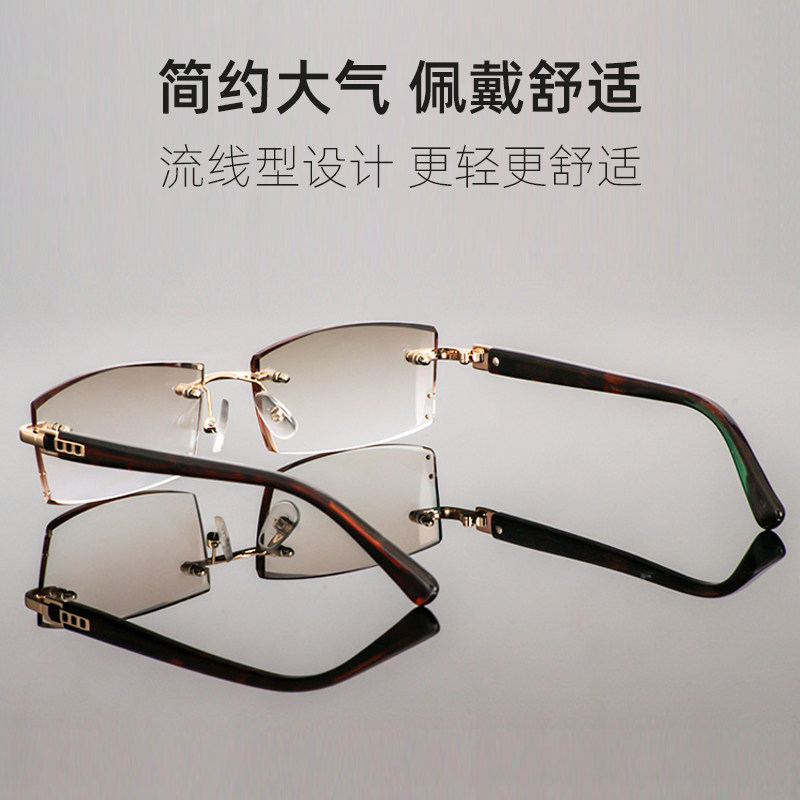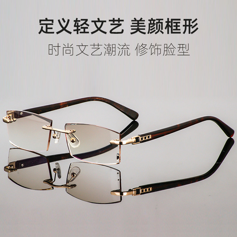 No-frame colored old flower glasses men's diamond cut edge tea colour fashion young far sight No border old light far sight glasses