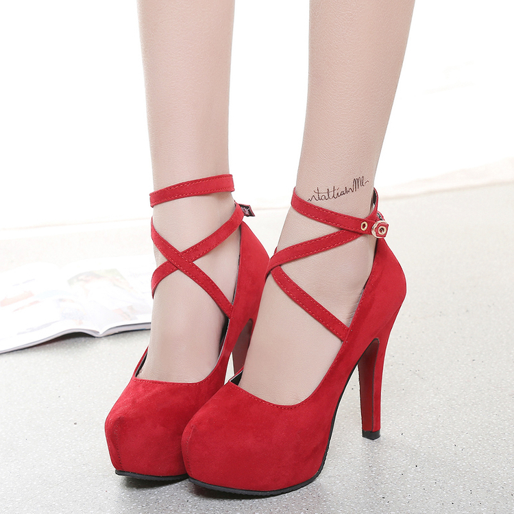 Large size high heels 40-43 stiletto waterproof platform CD pseudo-mother round toe bag shoes strappy women's shoes red wedding shoes