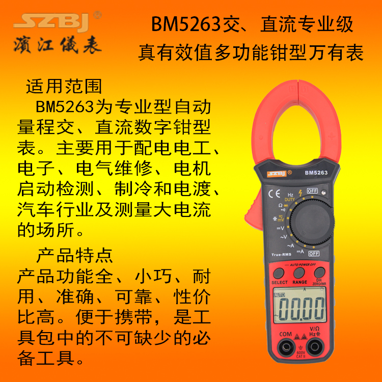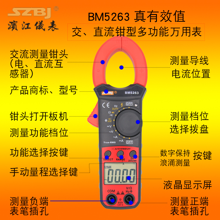 Hamjiang BM5263 true effective value AC/DC 600A large capacitive measuring digital pincer type universal electric meter