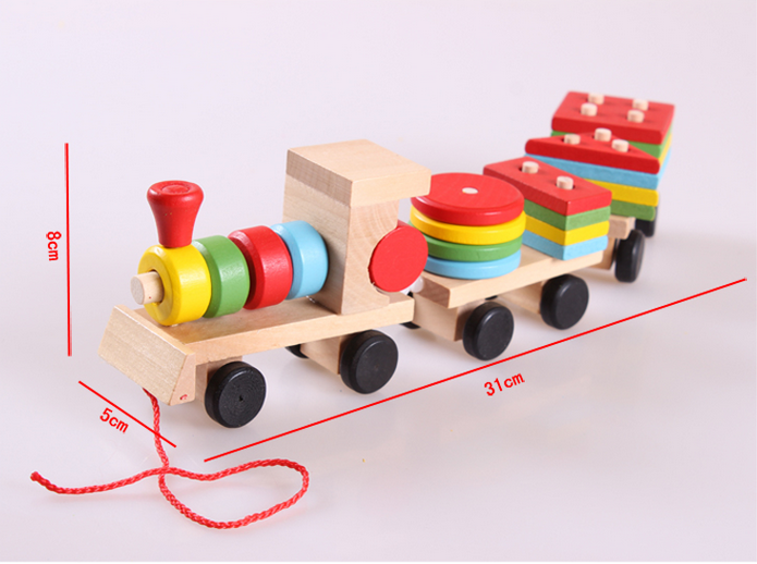 Children drag three small train wooden disassembly shape matching baby cognitive early teaching aids intellectual toys