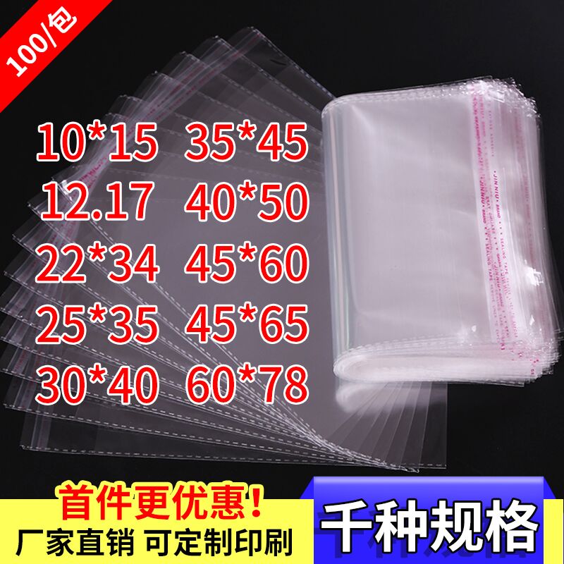 OPP self-adhesive bag transparent plastic bag clothing clothes cover pocket adhesive self-adhesive bag large bag wholesale