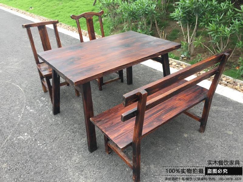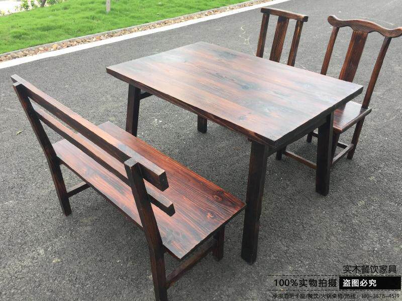 Special solid wood carbonized antique theme dining room Ramen restaurant Snack leisure farm Fast food Restaurant Dining table and chair combination