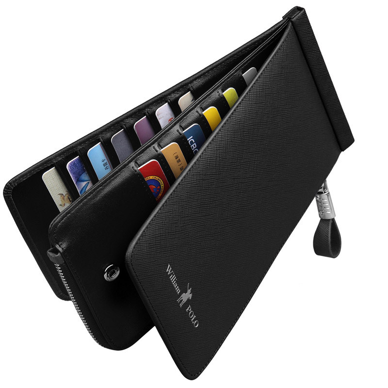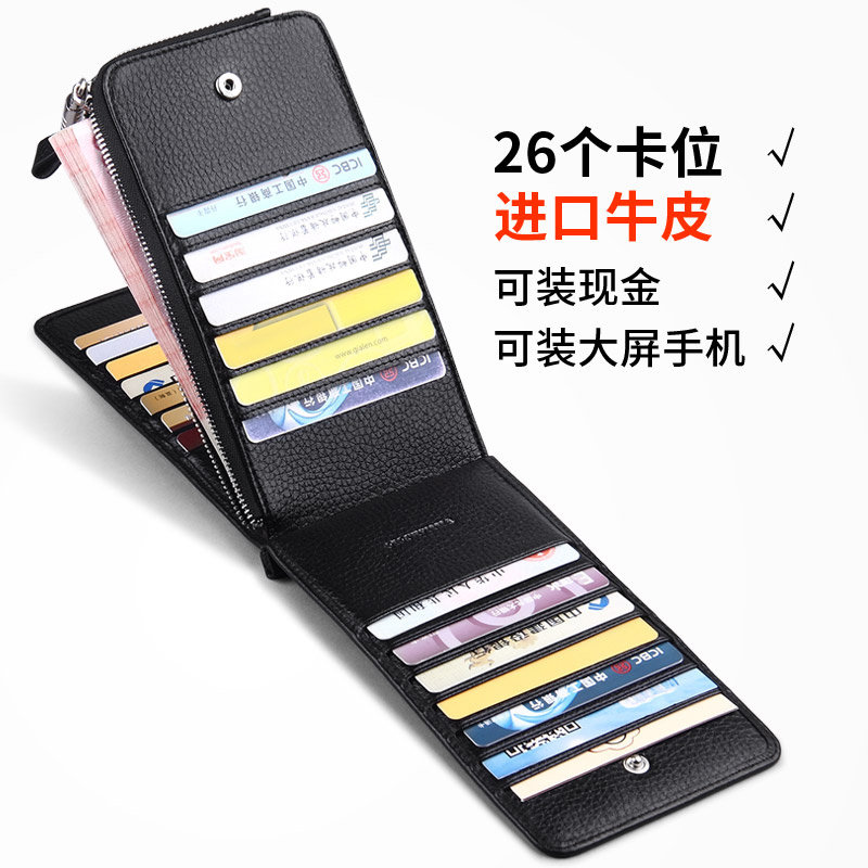 Long black leather cross pattern feel hard-anti-theft brush-26 card position Long black leather Litchi pattern feel soft-Anti-theft brush-26 card position long blue leather cross pattern feel