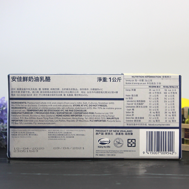 To October New Zealand's Anja butter cheese creamy cheeese cream cheese cake raw material 1kg