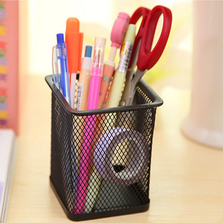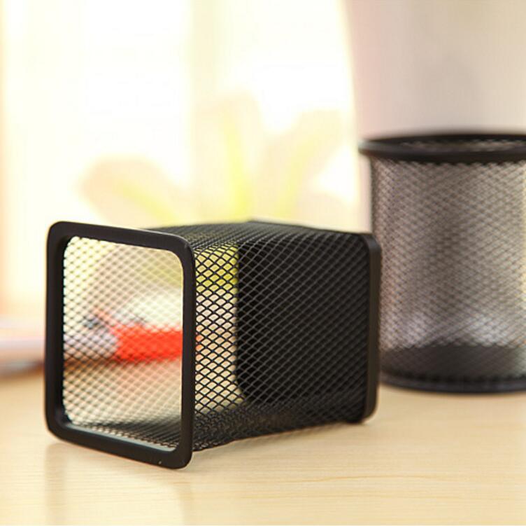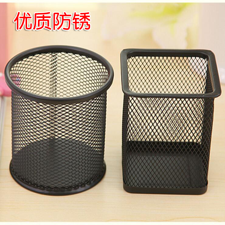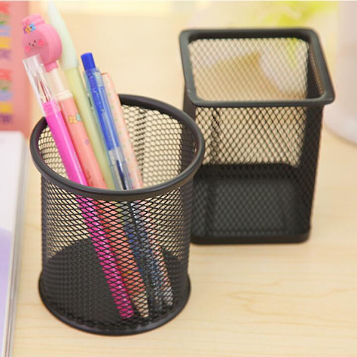Square round pen holder metal desktop sundries storage holder Korea creative stationery spray plastic rust-proof mesh pen holder